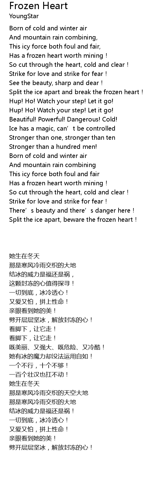 | [01:19.340] | Split the ice apart, beware the frozen heart! |