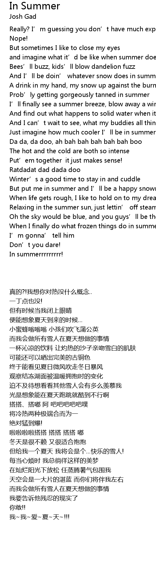 | [01:10.88] | But put me in summer and I’ll be a happy snowman! |