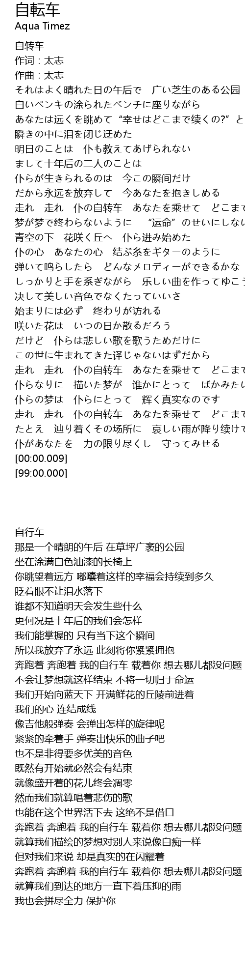| [03:30.89] | 走れ 走れ 仆の自转车 あなたを乘せて どこまでも行く |