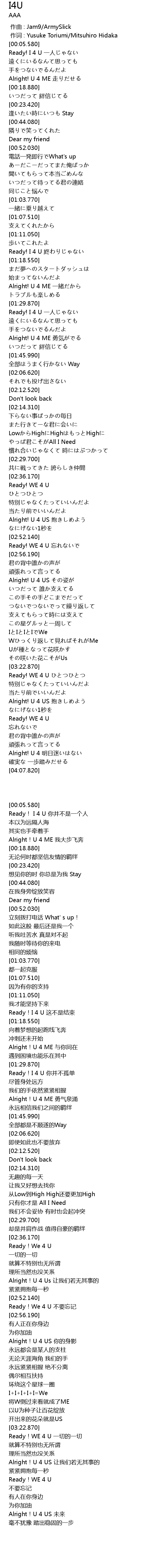 | [03:45.430] | Alright! U 4 US 抱きしめよう |