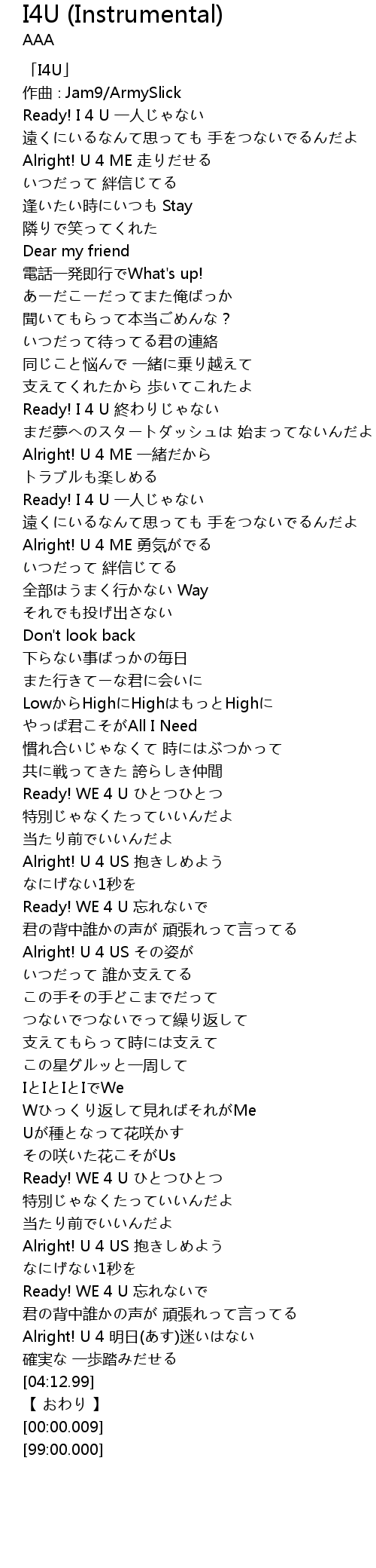 | [03:52.55] | Ready! WE 4 U 忘れないで |
