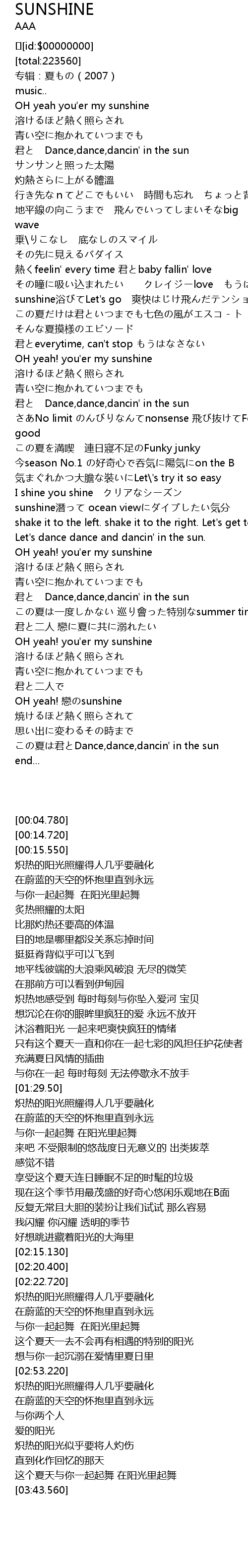 | [02:35.90] | 君と Dance,dance,dancin' in the sun |
