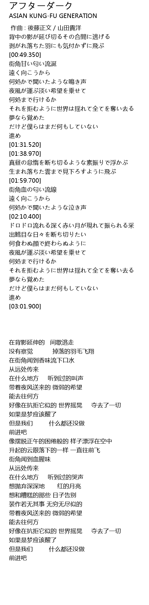 | [00:00.00] | 作曲 : 後藤正文/山田貴洋 |