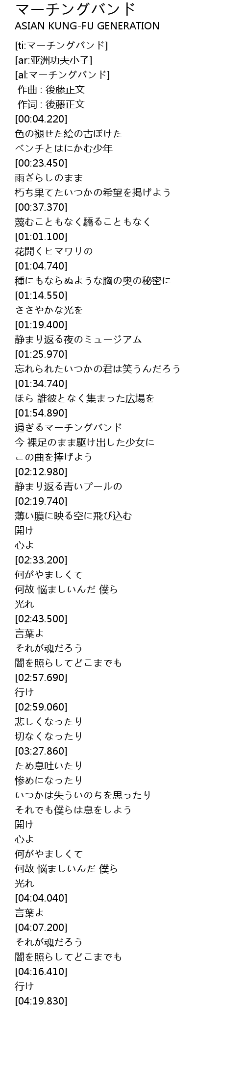 | [03:57.900] | 何故 悩ましいんだ 僕ら |