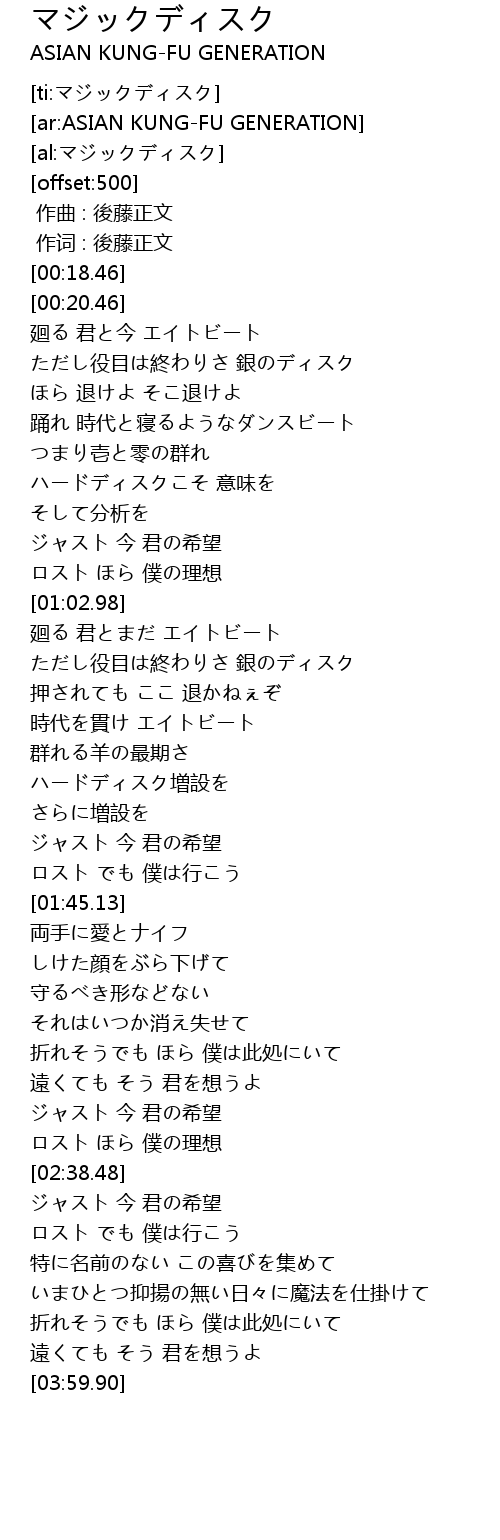 | [00:01.00] | 作词 : 後藤正文 |