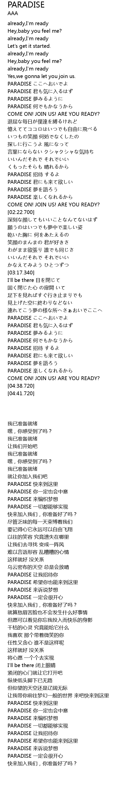 | [03:36.480] | PARADISE ここへおいでよ |