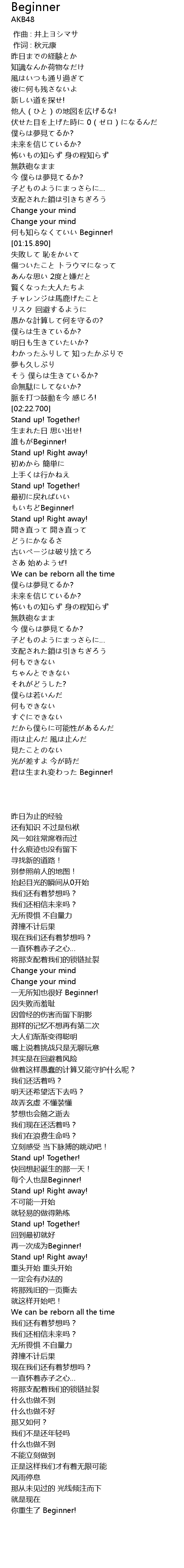 | [03:43.640] | 君は生まれ変わった Beginner! |