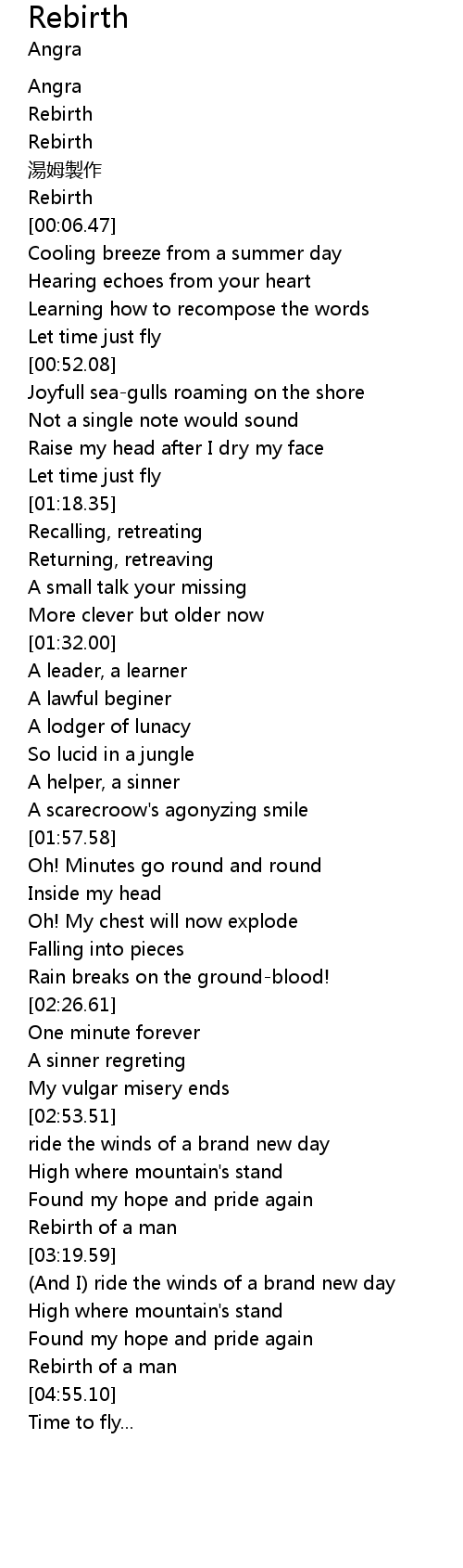 | [04:47.07] | Rebirth of a man |