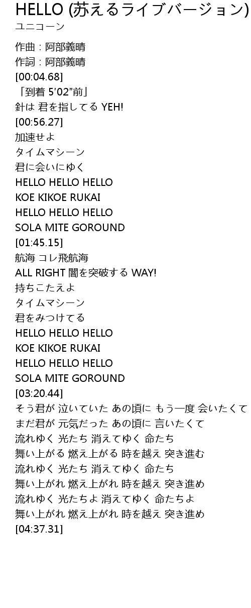| [03:01.82] | HELLO HELLO HELLO |