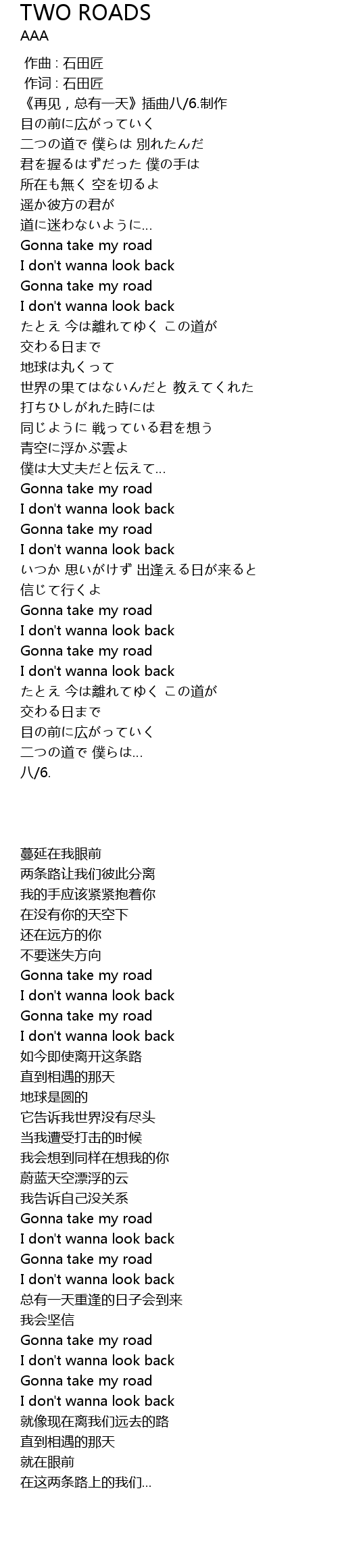 | [00:51.339] | 二つの道で 僕らは 別れたんだ |