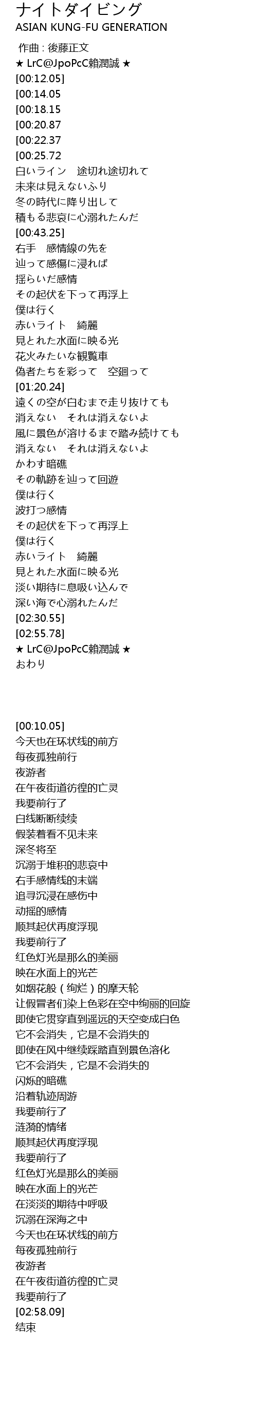 | [02:48.61][00:20.87] | ナイトダイバー |