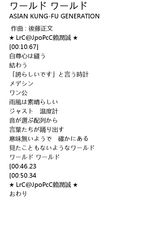 | [00:44.67] | ワールド ワールド |