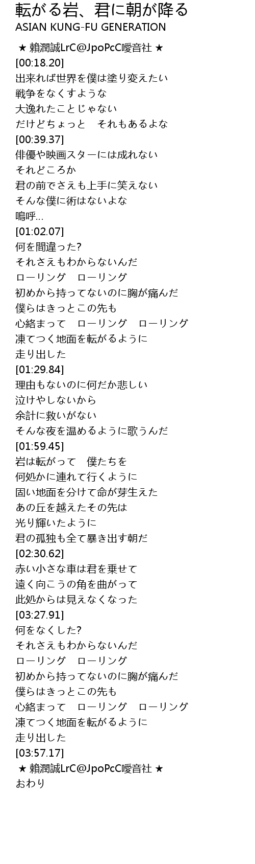 | [03:34.18] | ローリング ローリング |