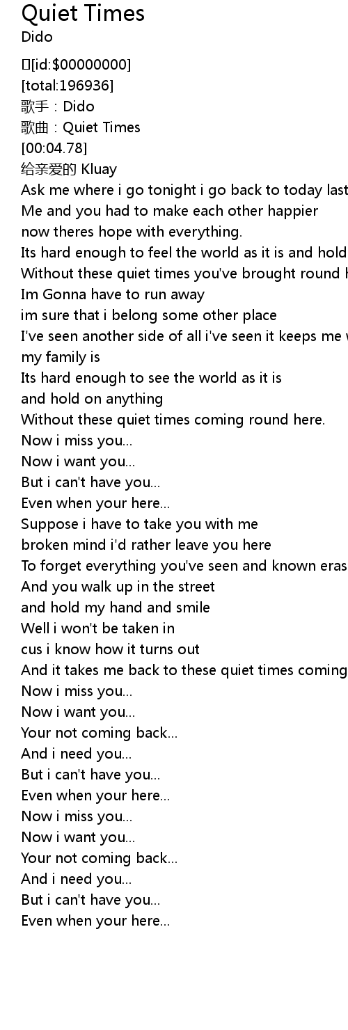 | [00:01.928] | ge qu: Quiet Times |