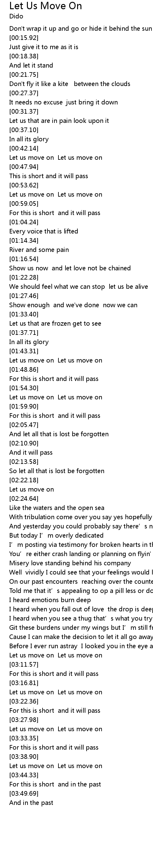 | [03:29.48] | Let us move on Let us move on |