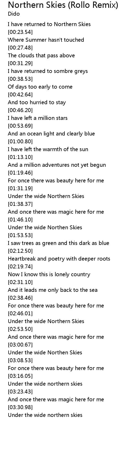 Under the wide Northern Skies |