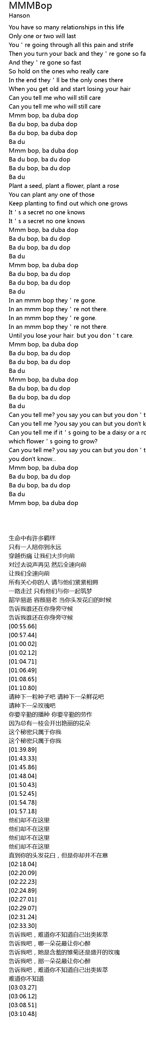 | [01:23.44] | Plant a seed, plant a flower, plant a rose |