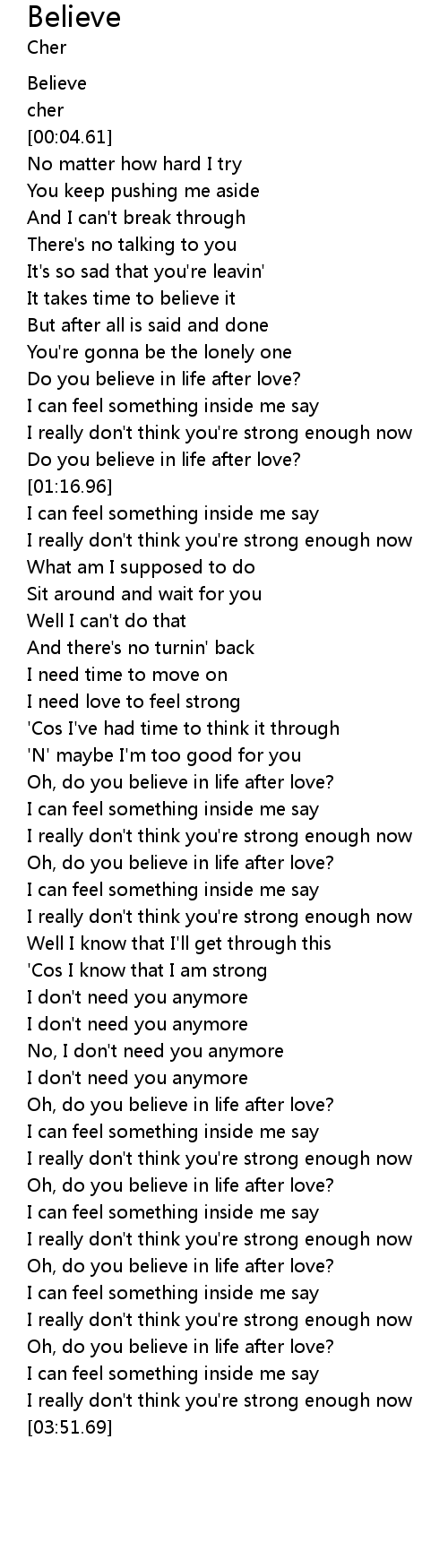 Oh, do you believe in life after love? |