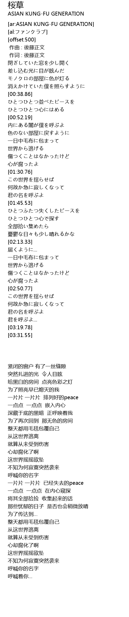 | [00:33.87] | 消えかけていた僕を照らすように |