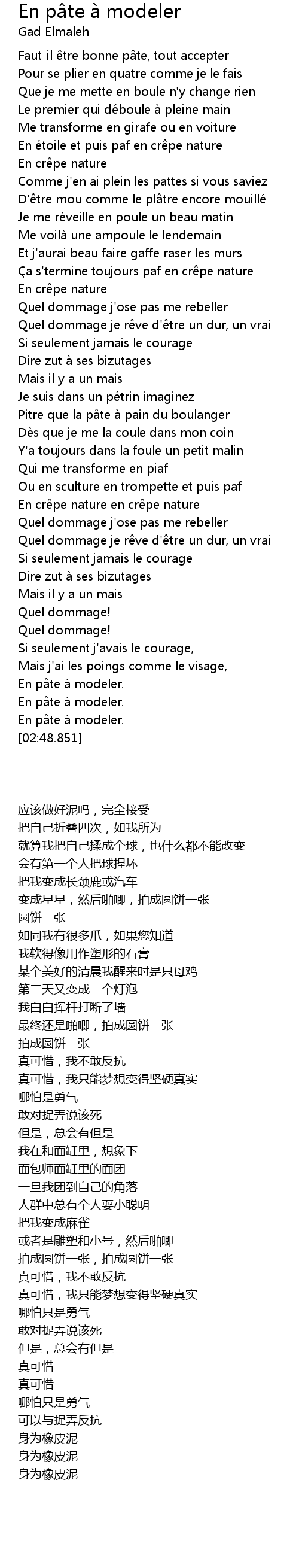| [02:45.768] | En pâte à modeler. |