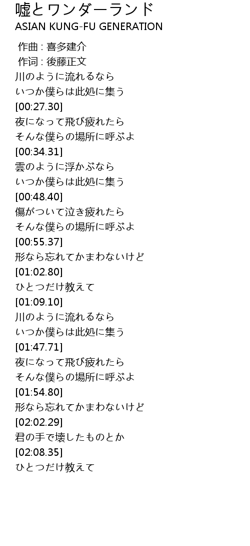 | [00:01.00] | 作词 : 後藤正文 |