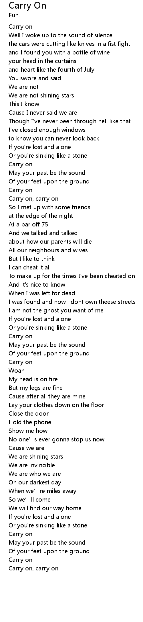 | Carry on, carry on |