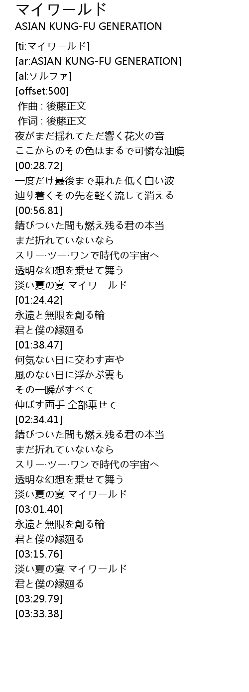 | [02:56.57] | 淡い夏の宴 マイワールド |