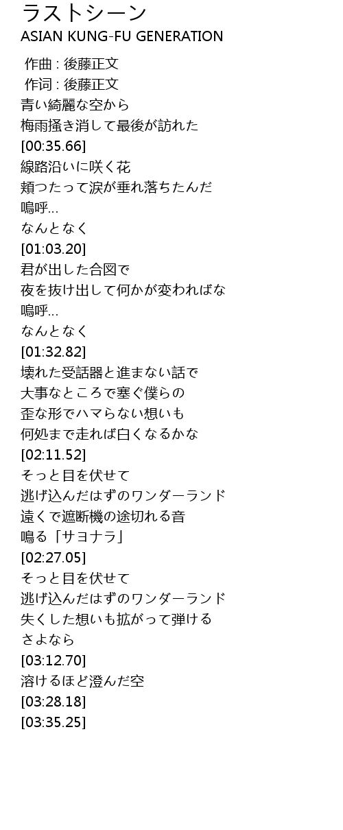 | [02:19.08] | 遠くで遮断機の途切れる音 |
