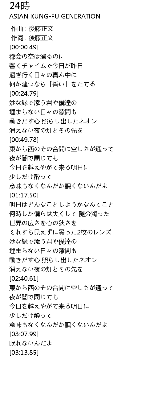 | [00:00.00] | 作曲 : 後藤正文 |