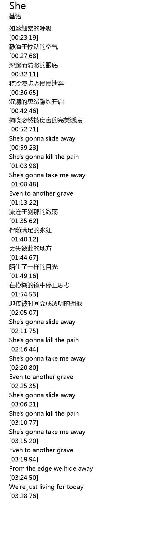 | [01:00.54] | She' s gonna kill the pain |