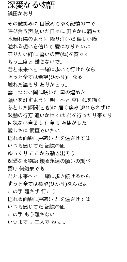 | [03:32.65] | 深愛なる物語 綴る永遠の願いの調べ |