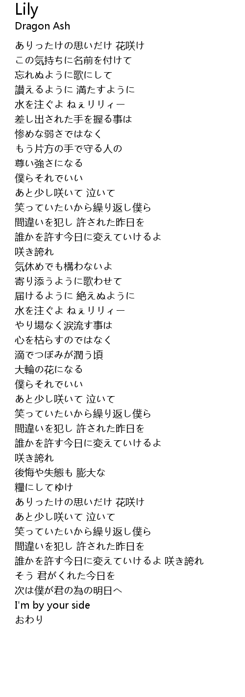 | 誰かを許す今日に変えていけるよ 咲き誇れ | |