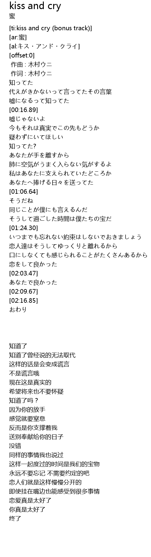 | [01:38.08] | 恋人達はそうしてゆっくりと離れるから |
