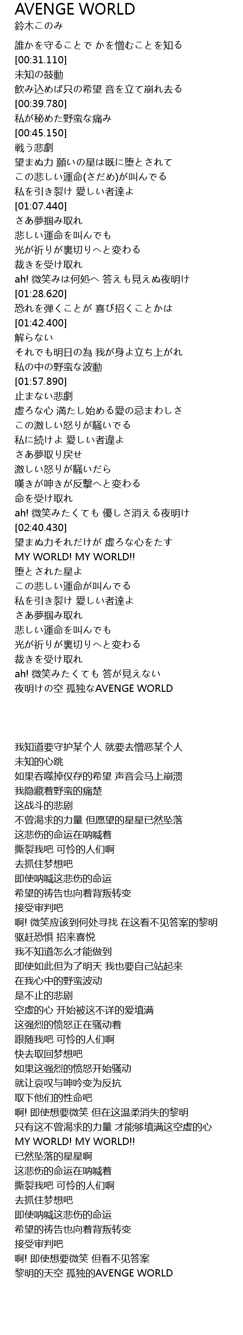 | [03:49.910] | yè míng kōng gū dú AVENGE WORLD |