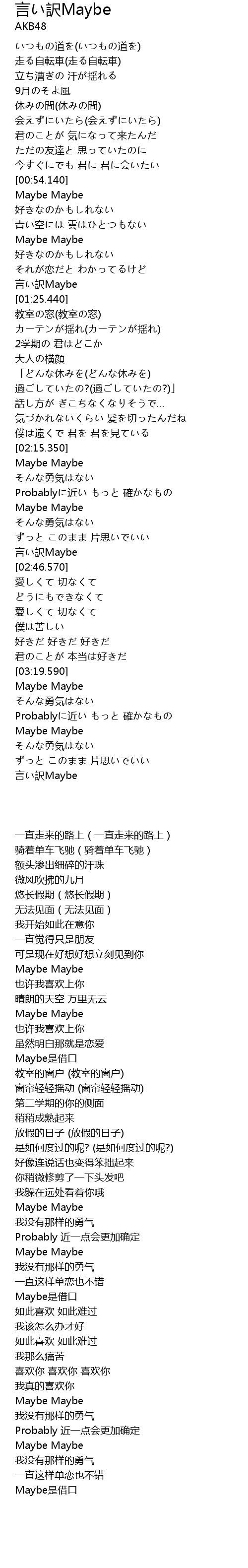 | [02:23.230] | Probablyに近い もっと 確かなもの |