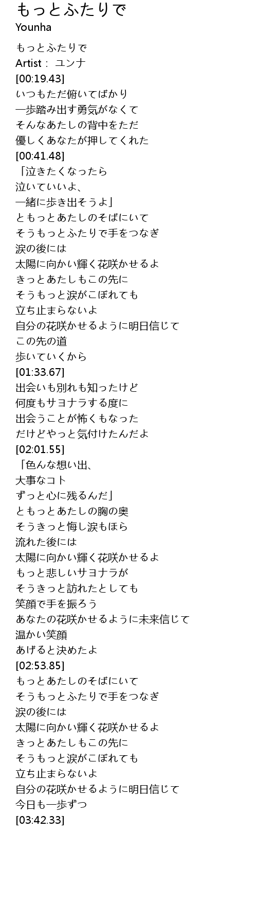 | [00:016.87] | もっとふたりで |