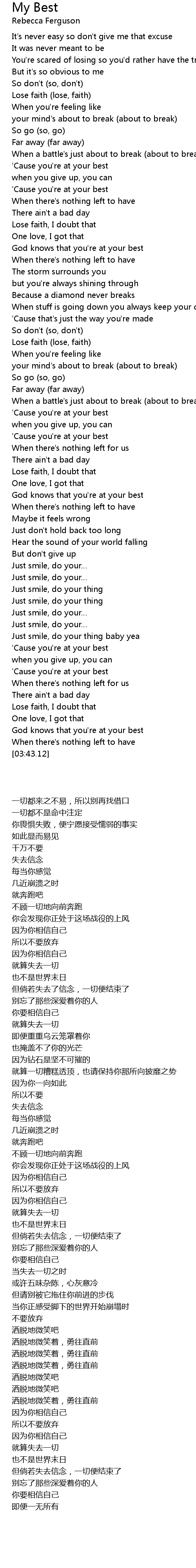 | [00:49.20] | ' Cause you' re at your best |