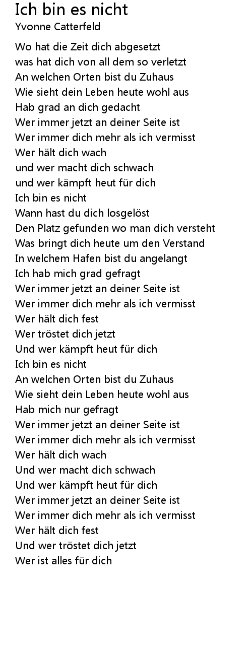 | Song | Ich bin es nicht |