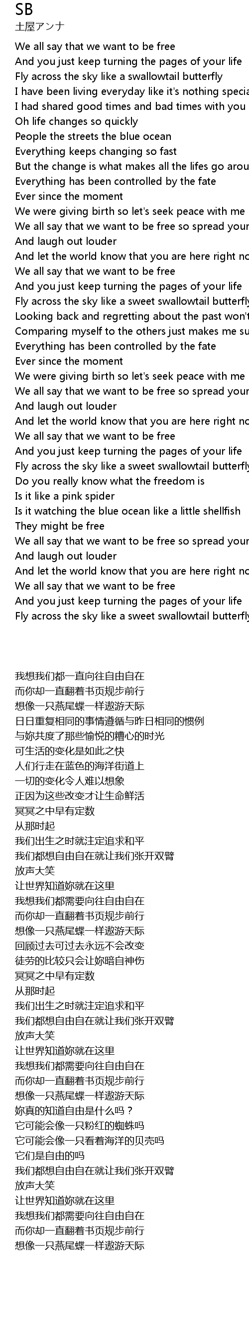 | [01:22.95] | Fly across the sky like a sweet swallowtail butterfly |