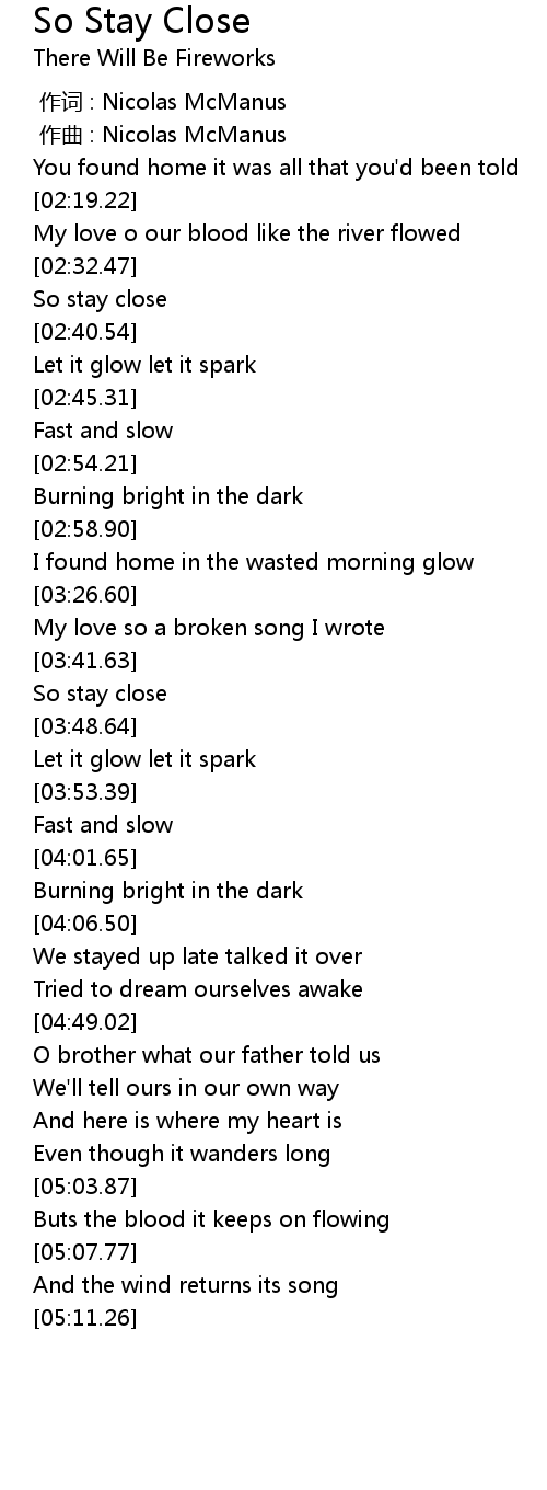 | [02:37.69] | So stay close |
