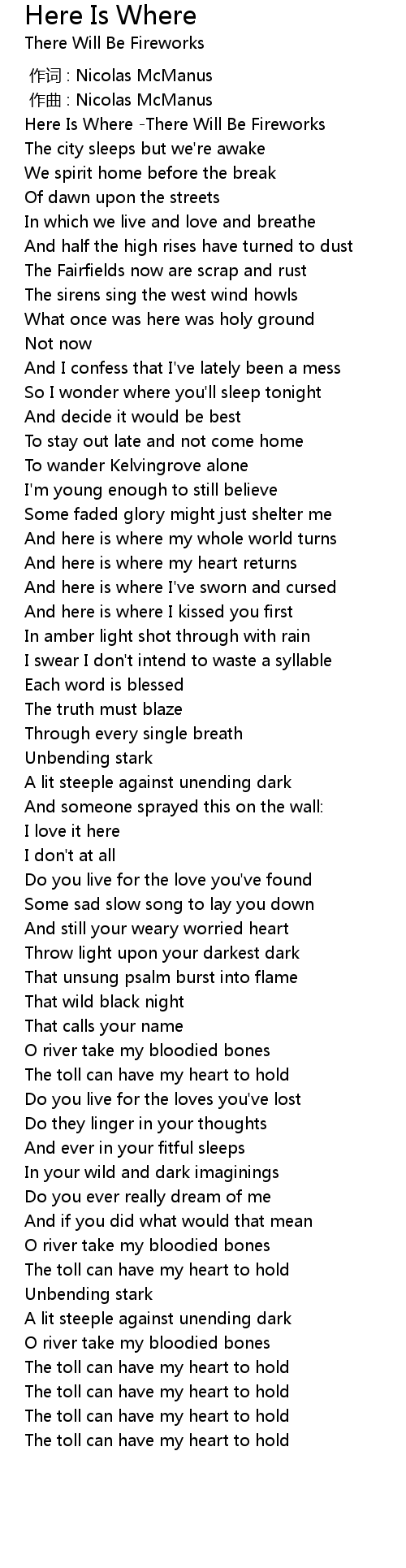 | [00:00.00] | Here Is Where -There Will Be Fireworks |