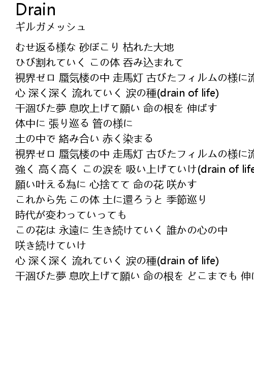 | 強く 高く高く この涙を 吸い上げていけ(drain of life) | |