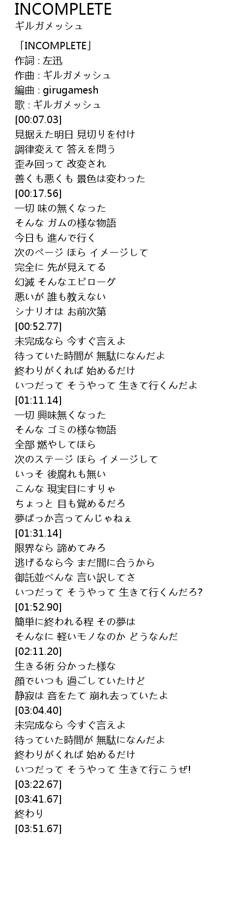 | [00:46.21] | 幻滅 そんなエピローグ |