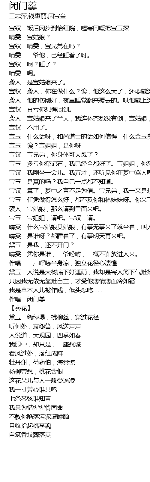 | [05:22] | 黛玉:绕绿堤,拂柳丝,穿过花径 |