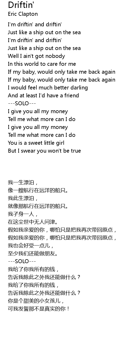 I'm driftin' and driftin' |
