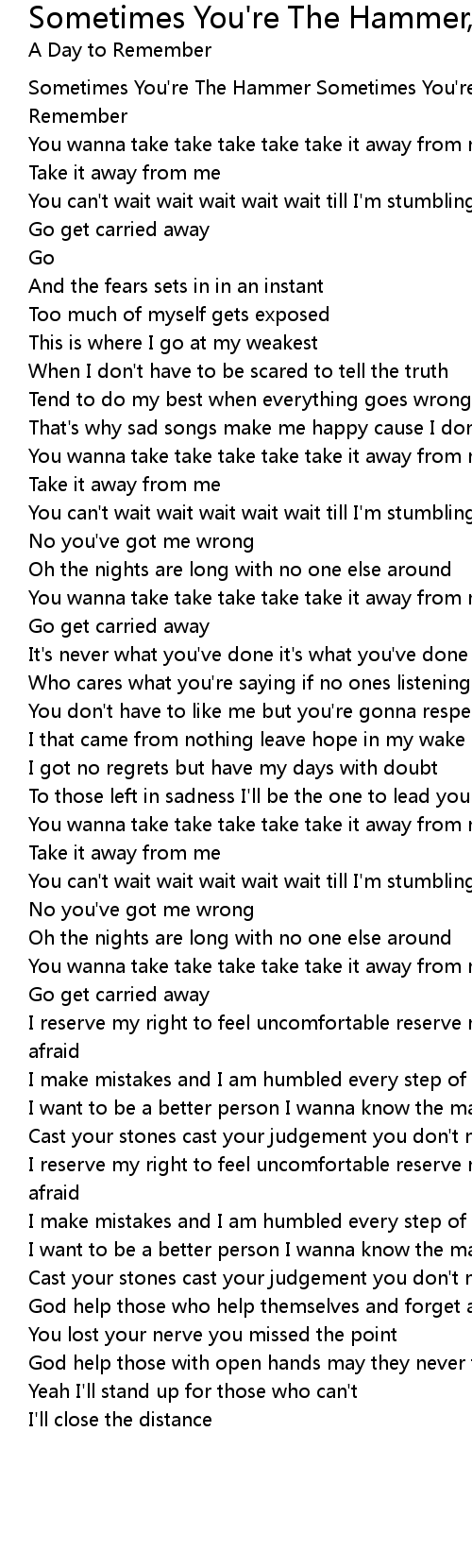 Sometimes You're The Hammer Sometimes You're The Nail -A Day To Remember |