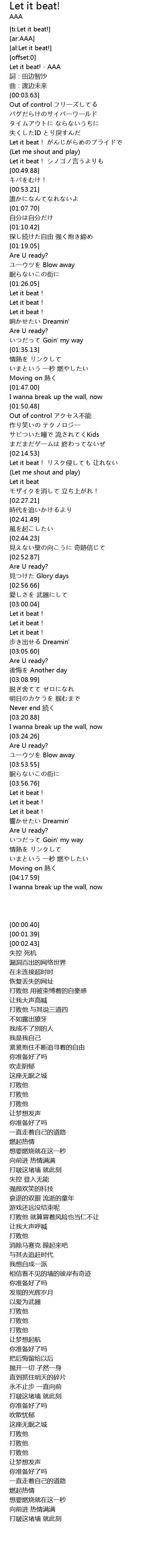 | [00:00.40] | Let it beat! AAA |