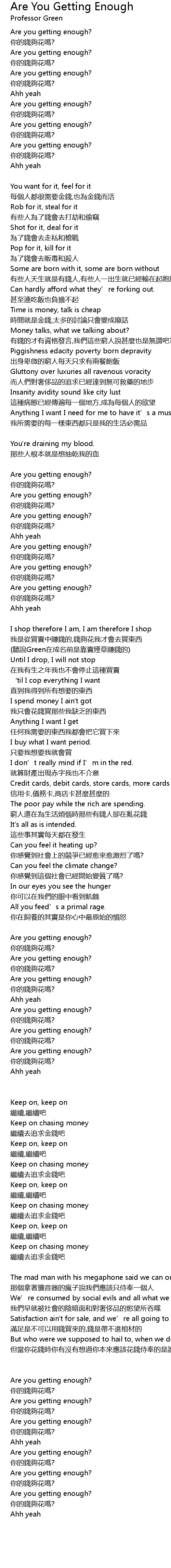 | Song | Are You Getting Enough |