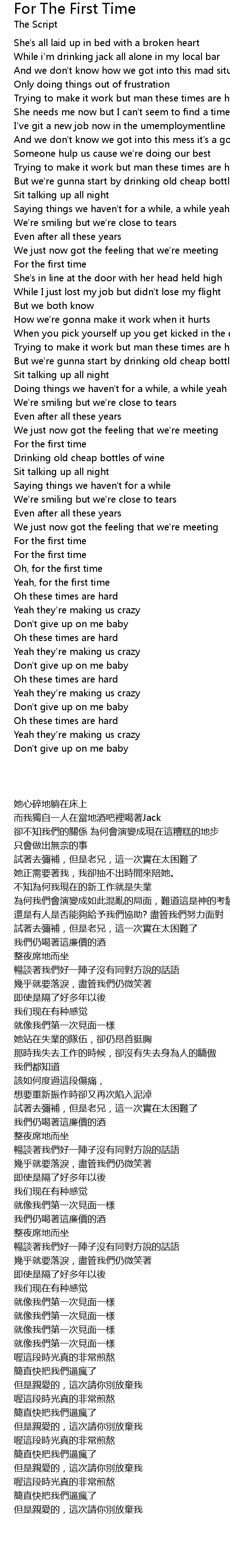 For The First Time Lyrics