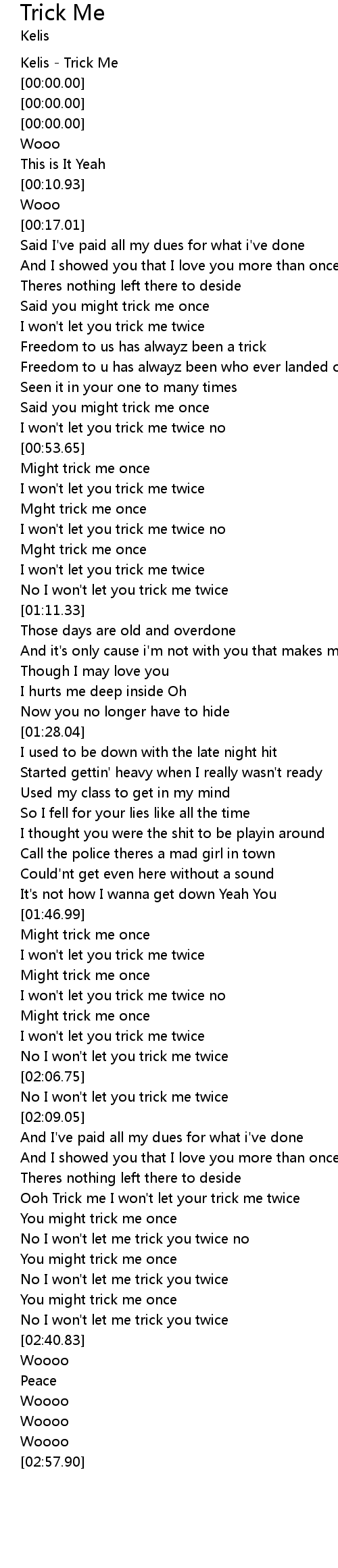 Ooh Trick me I won't let your trick me twice |